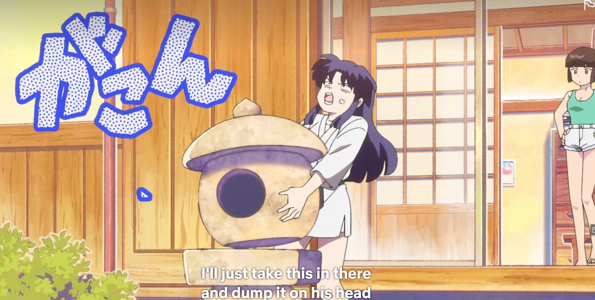 Remember how I figured “a bunch of the humor is going to be derived from Ranma hiding or concealing his gender?” Nope! Ranma seems utterly unconcerned with keeping the secret of his gender transformations. I figured that’d be the engine of the show’s comedy, but in fact he seems pretty willing to reveal it to basically anybody who cares to listen. In fact, the comedy often lives in the fact that despite this, nobody outside of the core family ever seems to clue in.