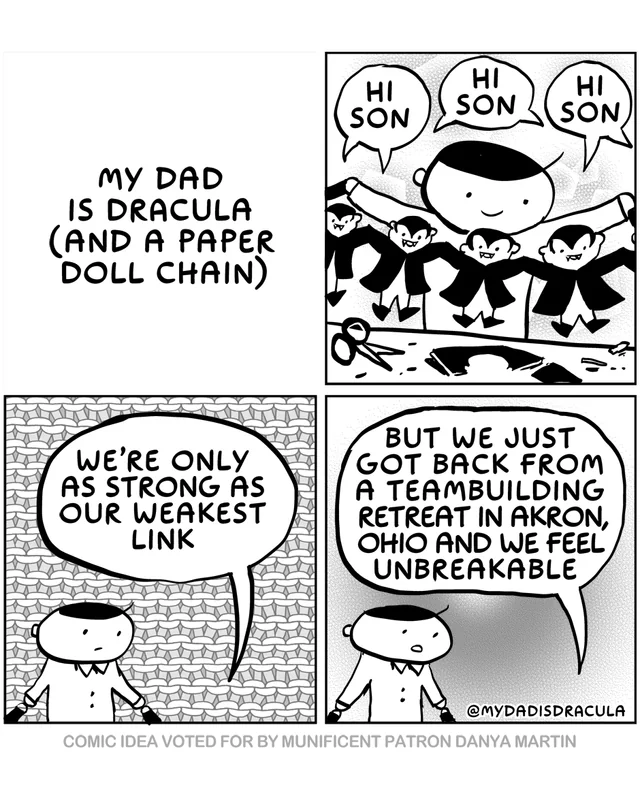 I don’t understand “My Dad is Dracula (and a OTHER THING)” guy, like, it’s got a Dinosaur Comics like cadence where it’s just a repeating formula, but it’s never really funny, but also I’m never really mad to see one of these: