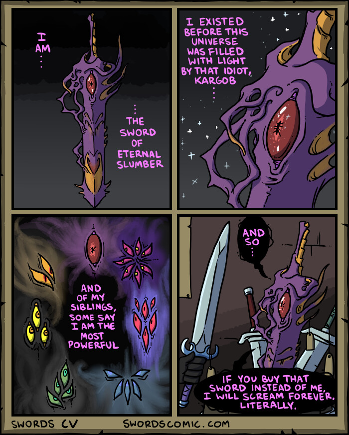 Swords Comic is excellent, and literally every comic is about a sword in some way. That’s… that’s dedication to the bit.